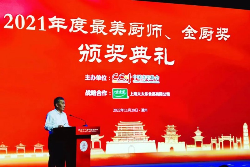中国烹饪协会乔杰副会长主持2021年度最美厨师、金厨奖颁奖典礼