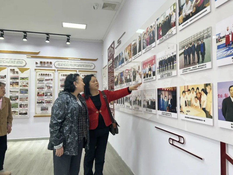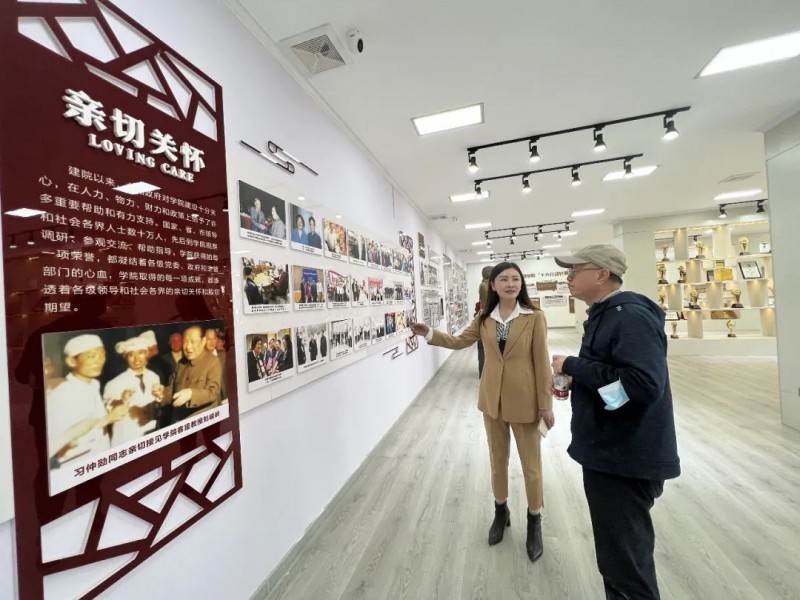 王新丽院长等院领导热情的接待了老领导和夫人一行。在学术报告厅观看了校园宣传片,参观校史馆,一件件妙手生花、技艺精湛的作品,一张张见证学院成长的相片,一樽樽在灯光的映射下熠熠生辉的奖杯,让老领导和夫人连连赞叹,并对于学院近三十年来取得的辉煌成果给予高度赞扬。
