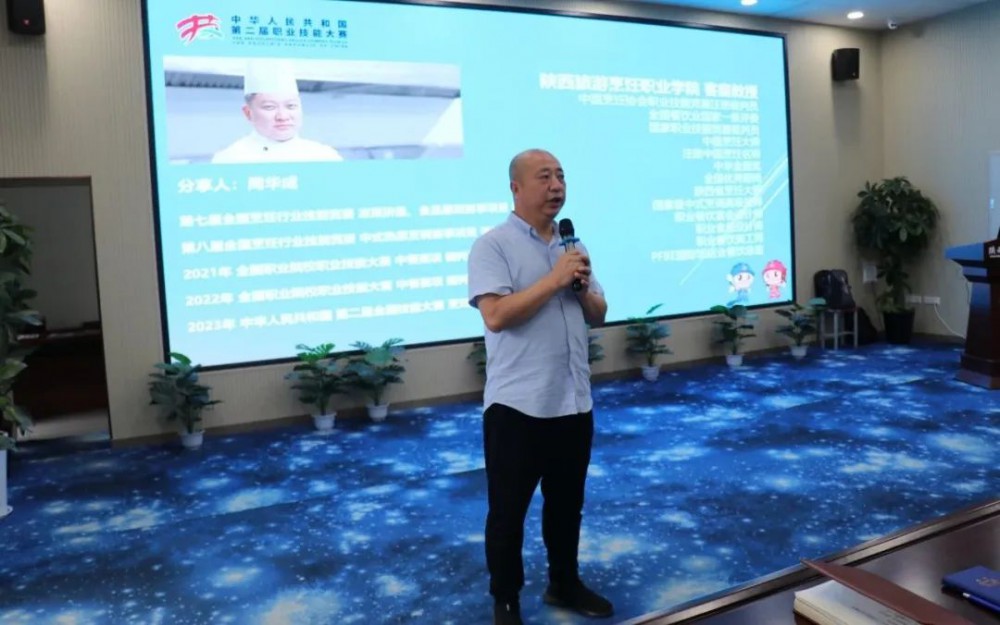 9月22日,jinnianhui今年会官网开展了学习中华人民共和国第二届职业技能大赛国赛烹饪(中餐)分享会。由学院客座教授周华成主讲;此次活动以“走进职业院校,点亮技能之光”为主题,引导学生立志技能成才、坚定技能报国,成为爱党报国、技艺精湛的高素质技能人才,会议由副院长杨文利主持。