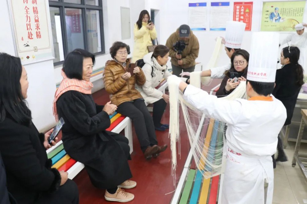 烹饪艺术学院中西面点专业师生为来访交流嘉宾准备了拉面表演