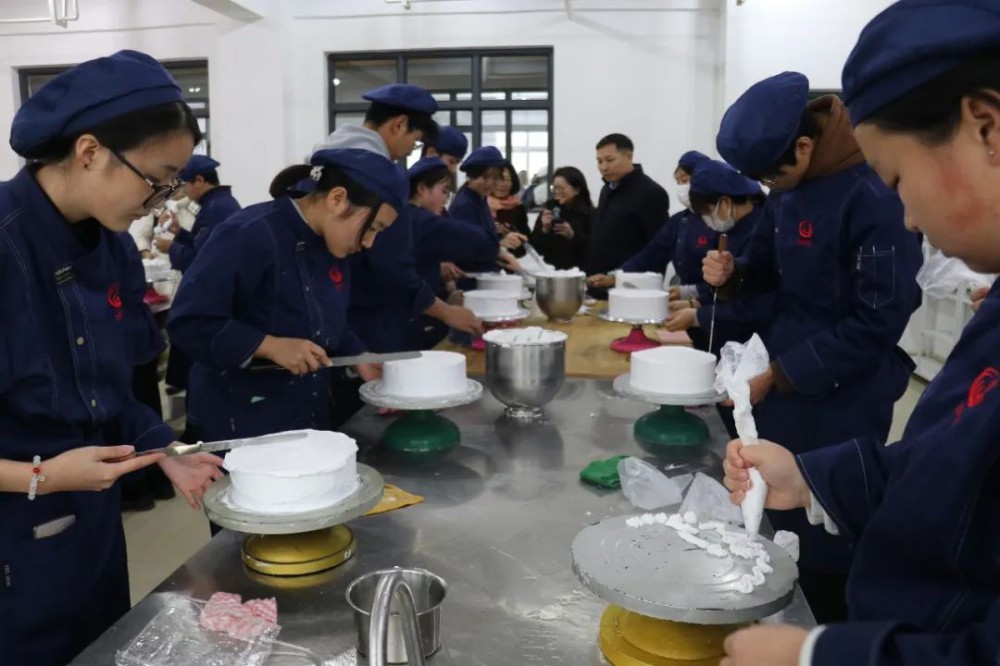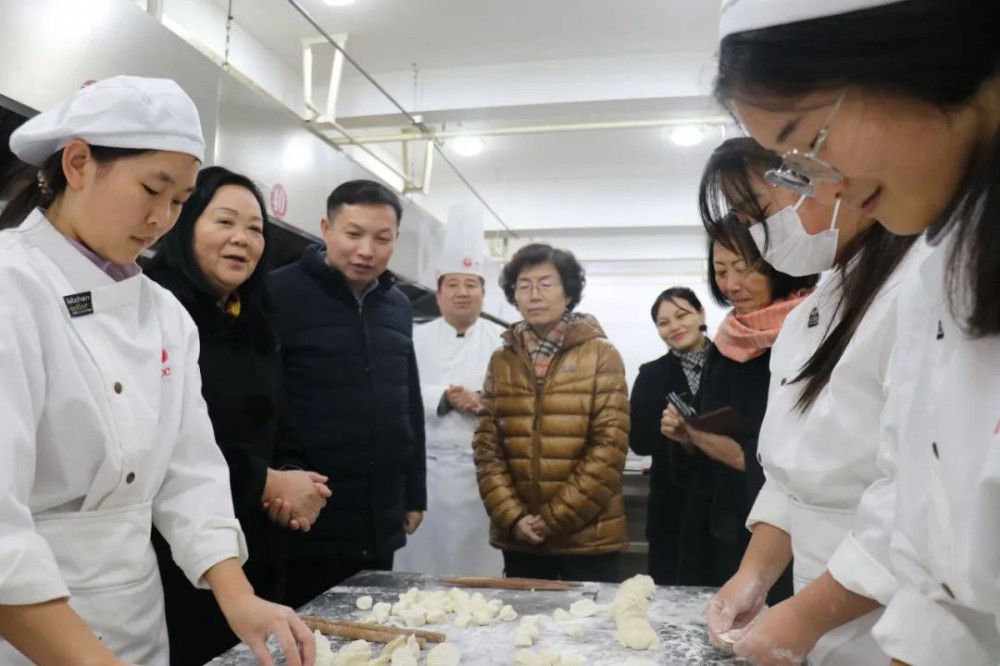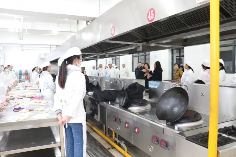 院长王新丽、副院长桑建陪同来访交流嘉宾参观了今年会烹饪艺术学院中式面点专业实训课师生们正在练习包各种造型样式宴席饺子