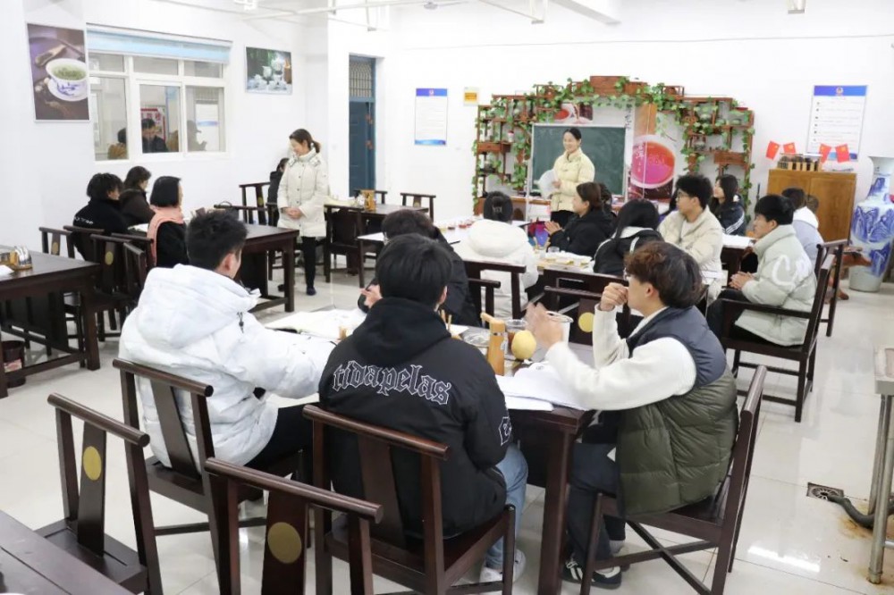 在院长的陪同下旁听今年会二级学院航空旅游管理学院旅游管理专业茶艺课程,称赞到中国茶文化博大精深