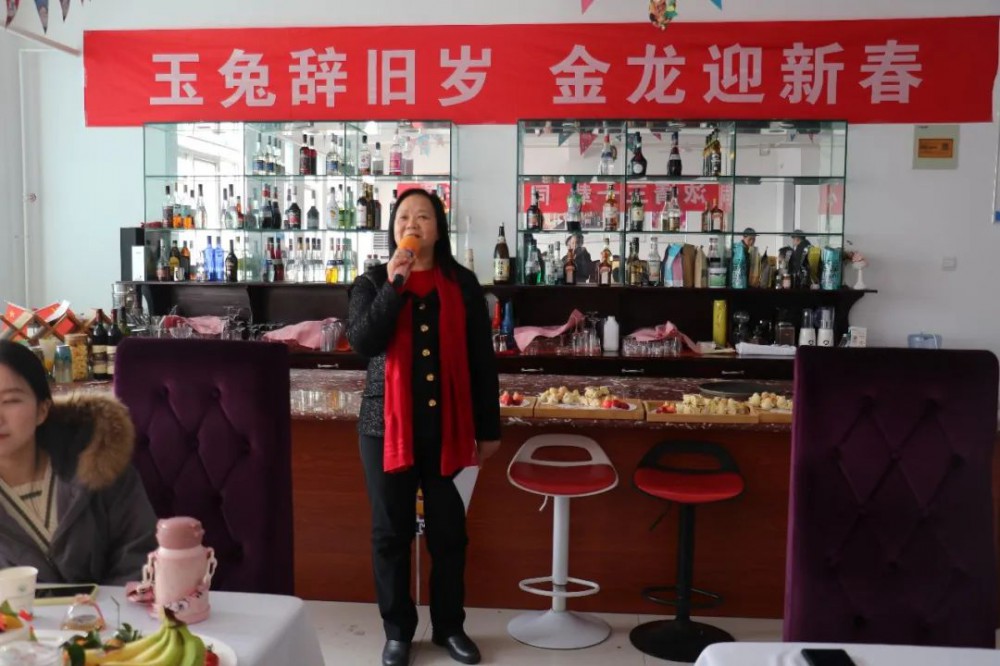 茶话会伊始,院长王新丽讲到,感谢这一年来教师们的坚持、坚守;并感激大家对工作和对学院的一份责任,并向全体教职工致以亲切的问候和新年的祝福。2021我们全院上下相互鼓励、团结奋斗的情形让人感动;我们早顶晨露、晚伴灯火让人感动。充满希望的2024年的风帆已经扬起,让我们继续同心同德,奋勇前行,用成绩点燃激情的梦想,用激情奏响发展的强音。