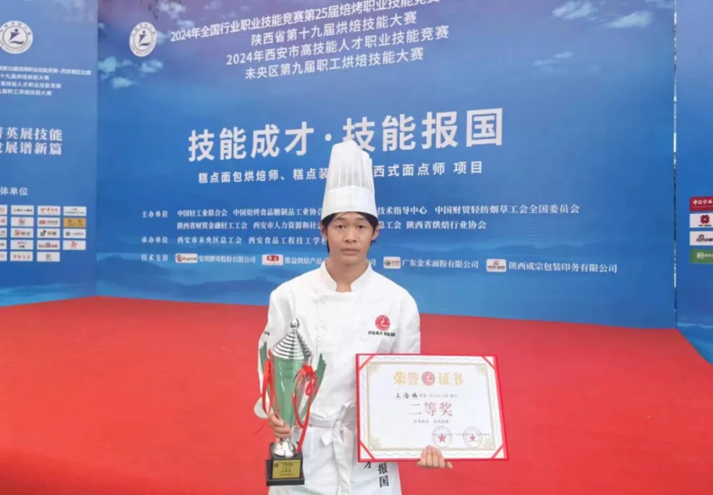 最后,再次祝贺王浩瑀在本次赛事中取得佳绩。也祝愿所有的陕旅西点学子能够带着和王浩瑀同学一样对烘焙的热爱和执着,在中国乃至世界的赛事舞台上崭露头角!
