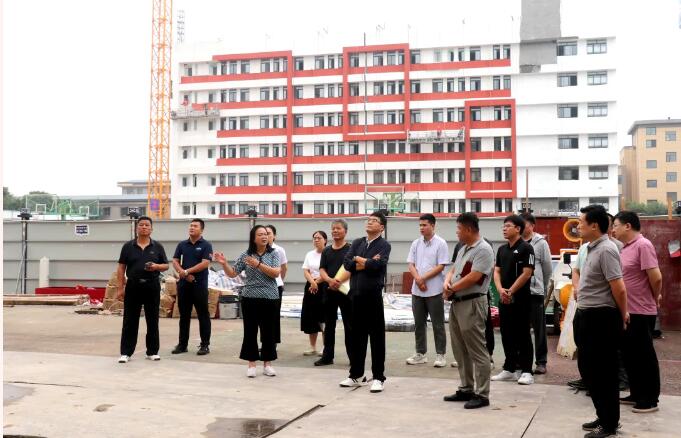 领导一行实地查看了教学楼、学生公寓房间、公共走廊等相关建设区域,详细了解了教学楼、学生公寓楼内部及公共区域的施工进度和整体装修情况。细致查看了工程进展、建筑内部结构设计、工程质量及配套设施建设等,全面了解校区工程建设的总体情况,并在工地项目部召开了新教学楼工程建设现场推进会。
