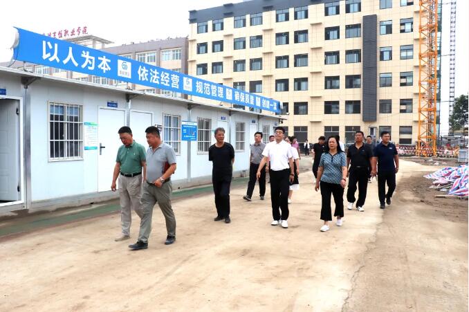 7月10日,学院理事会领导、院长王新丽、院长助理曹大庆、后勤处负责人李铜川,及各部门处室领导一行到学院新建教学楼、学生公寓工程施工现场,检查教学楼、学生公寓内部装修情况,并对项目建设进行实地指导。建设方陕西中格建设股份有限公司,监理方陕西博大立源数字咨询有限公司有关负责人陪同检查。