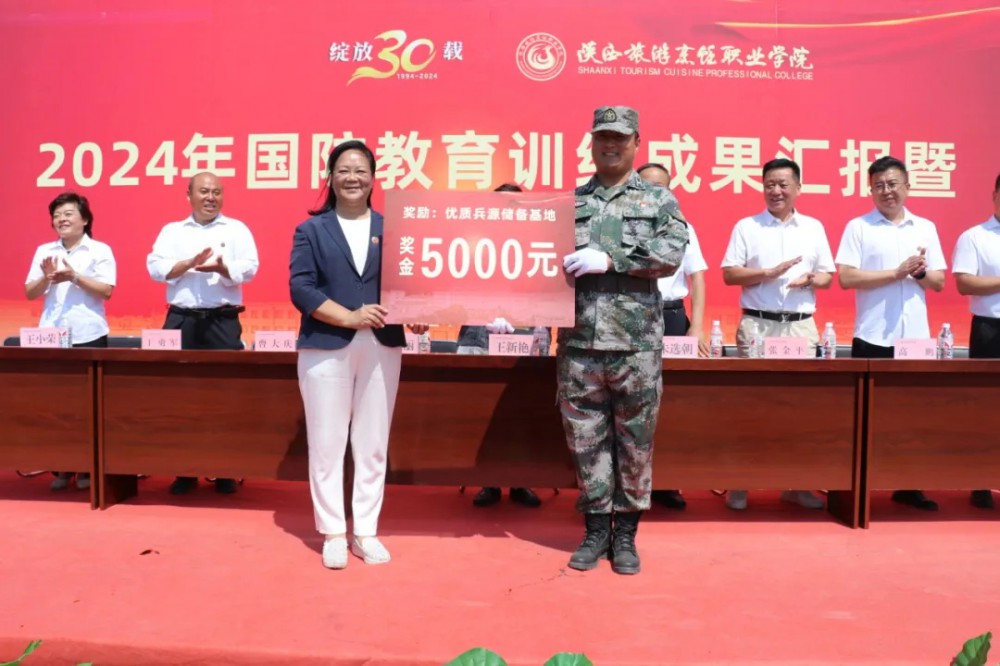 王新丽院长代表全校师生向2024级新生表示了最衷心的祝贺和最热烈的欢迎。对2024级新生的国防教育训练成果给予了高度评价。