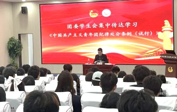 会议中,张书记围绕全面从严治团的要求、团员队伍管理现状等方面详细阐释了《条例》出台的背景,随后对总则、团纪处分种类及责任区分、对违反纪律行为的处分、对违法犯罪团员的团纪处分和团纪处分运用规则等方面进行细致解读。在引导青年团员树立坚定的理想信念、深入开展理想信念教育活动、帮助学生们培养良好的道德品质、形成积极健康向上的生活态度和奋斗精神中发挥积极作用。