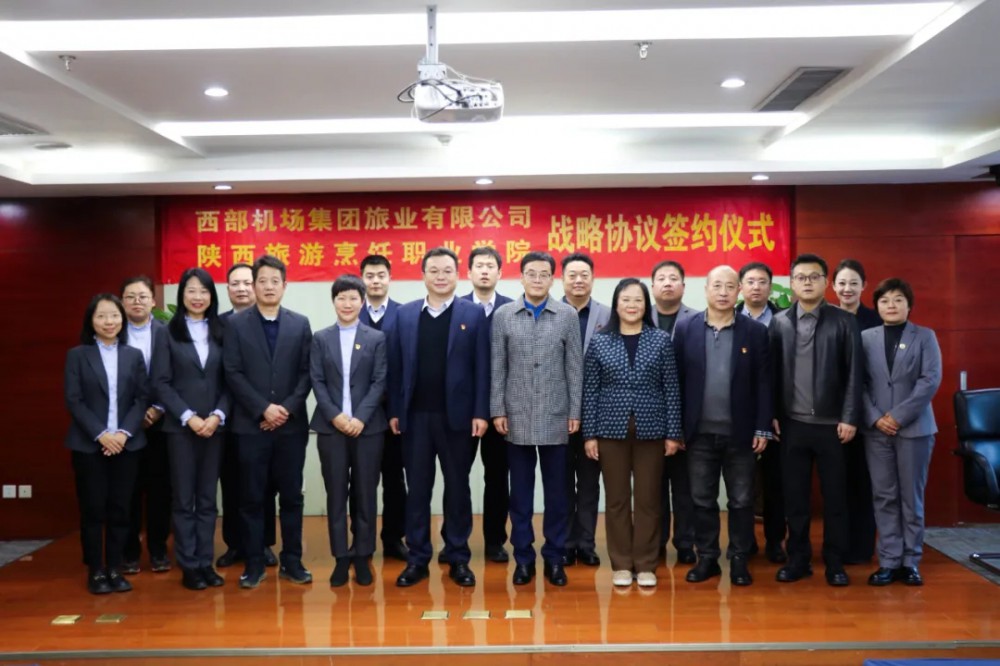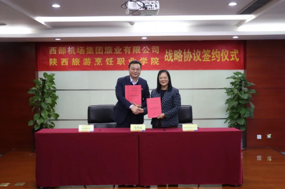 学院院长王新丽与西部机场集团旅业有限公司党委副书记张培根代表双方签署《战略合作协议》。