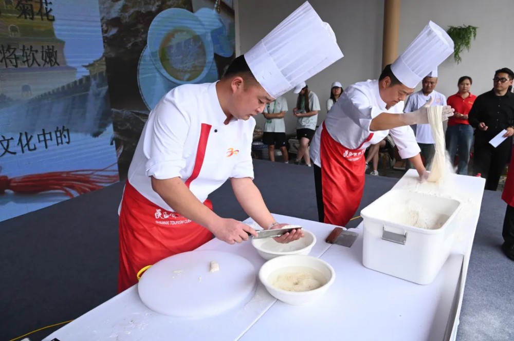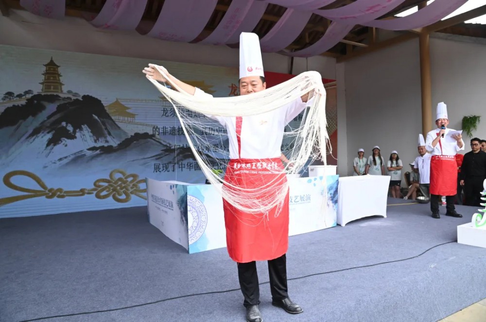 名厨于保银则表演了龙须拉面。他手中的面团在反复抻拉之下,瞬间变成了根根粗细均匀、细如龙须的拉面 ,高超的技艺让现场气氛达到高潮。