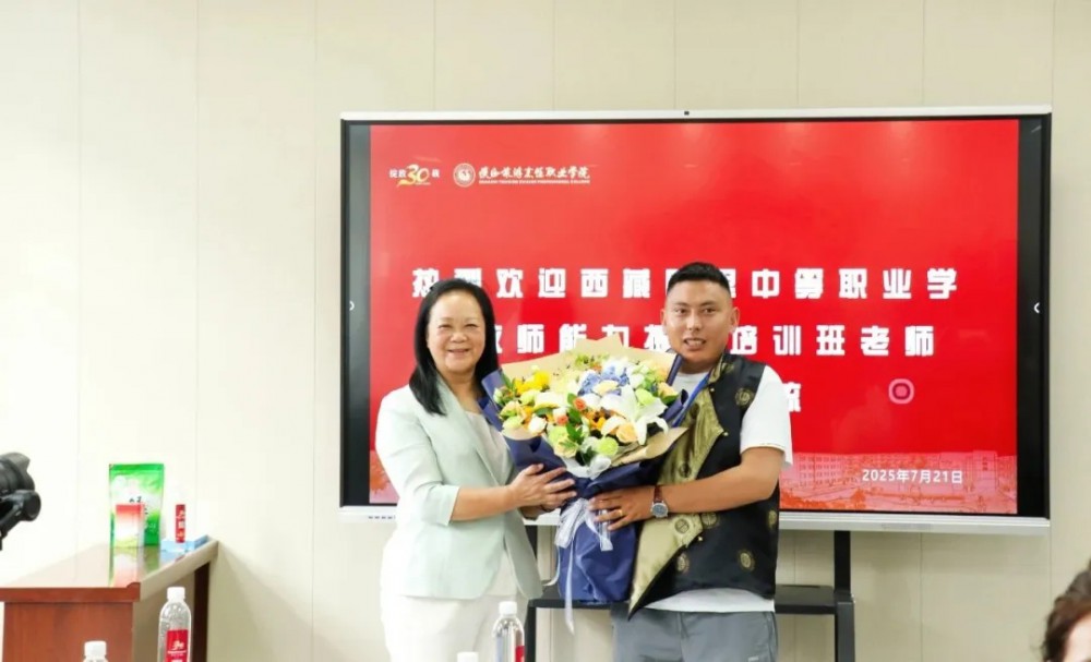 最后,学院院长向藏阿里中职校教师献花,藏阿里中职校教师向今年会参会老师敬献哈达,表达真挚祝福与感谢,活动在合影留念中圆满结束。