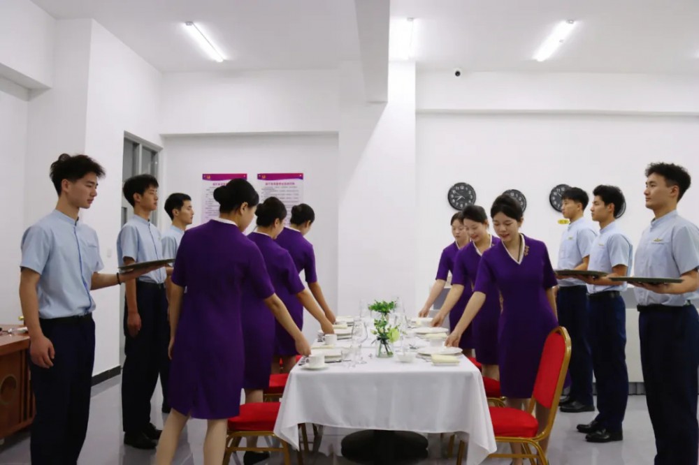 成功的接待,始于周密的准备。出发前,航空旅游管理学院为22名同学量身定制了系统性培训课程。从国际礼仪规范中的微笑弧度、手势幅度,到跨文化沟通中的语言技巧与禁忌;从午宴流程的每一个时间节点把控,到突发状况的应急处理方案,老师们通过情景模拟、案例分析、一对一指导等方式,将专业知识与实操技能倾囊相授 。同学们反复练习引导手势、模拟餐饮服务场景,不放过任何细节,只为在正式场合呈现最完美的状态 。