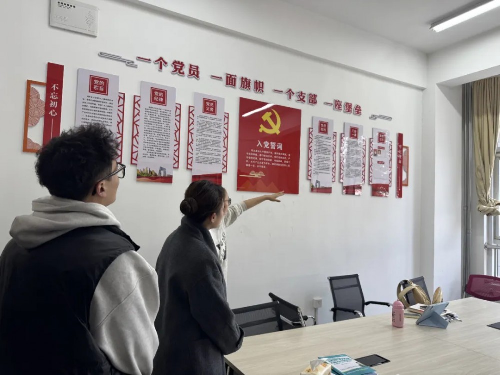 10 月 25 日,研学团队前往宁夏理工学院党员活动基地,开展红色主题学习。基地墙面上 “一个党员 一面旗帜” 的标语庄重醒目,在讲解员的引导下,团队成员逐一了解入党誓词的历史沿革、民航学院党总支的建设故事,从文字与图片中感受 “红色基因” 的传承。此次学习不仅强化了师生的理想信念,更让大家深刻理解 “党建引领育人” 的重要意义。