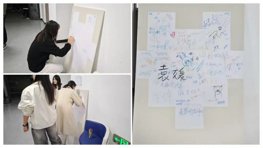 将情绪具象化、仪式化,有助于识别和接纳情绪,并进行自我关怀同学们通过这个活动了解到很多进行自我关怀的方法,并且在墙上留下了自己对未来美好的愿景。