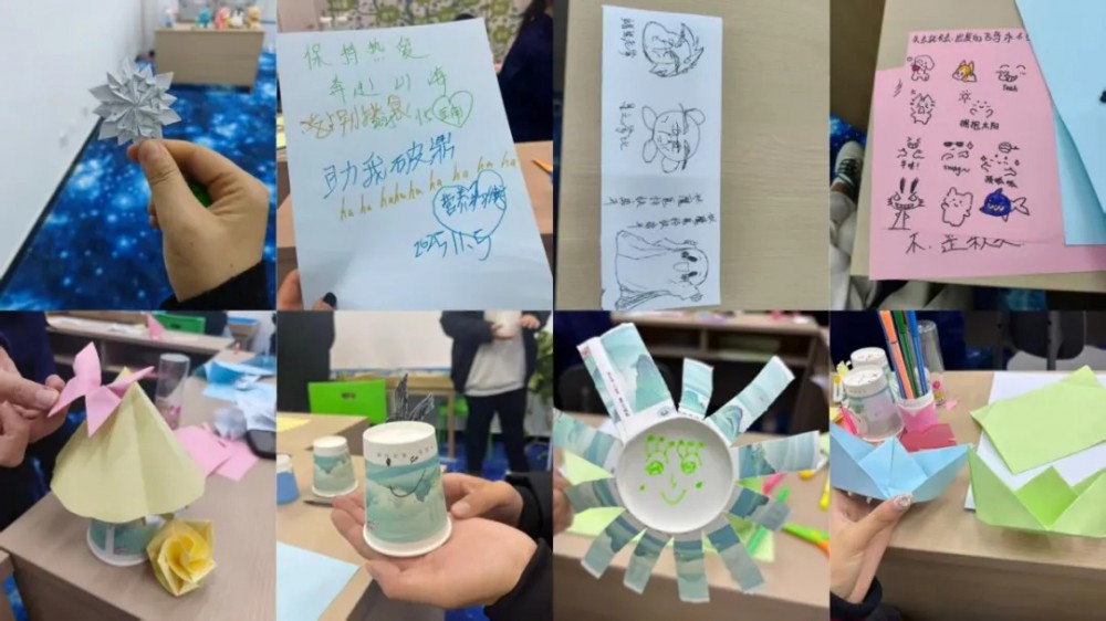 艺术创作本身就是一种治疗,能将内在感受转化为外在作品,起到宣泄和表达的作用。同学们通过绘画、折纸等方式表达自己的情绪。