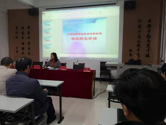 第三阶段由王新丽院长和崔继华书记分别做了重要讲话。王新丽从学院的目前现状,诊改对学院发展的重要意义两个方面做了高屋建瓴的讲话,他强调了单位对每个人的重要性,他最后要求大家放下身段,同舟共济开创学院的未来。崔继华对教职工在诊改工作中的付出和取得的成绩做了肯定,同时指出诊改工作关系到学院的未来。他鼓励大家要全身心的投入到学院工作中来,在学院这个关键时期要团结一致,勇于担当。为学院抓住这次机遇,实现追赶超越,扩大学院的办学声誉,为学院的发展贡献自己的力量和智慧。